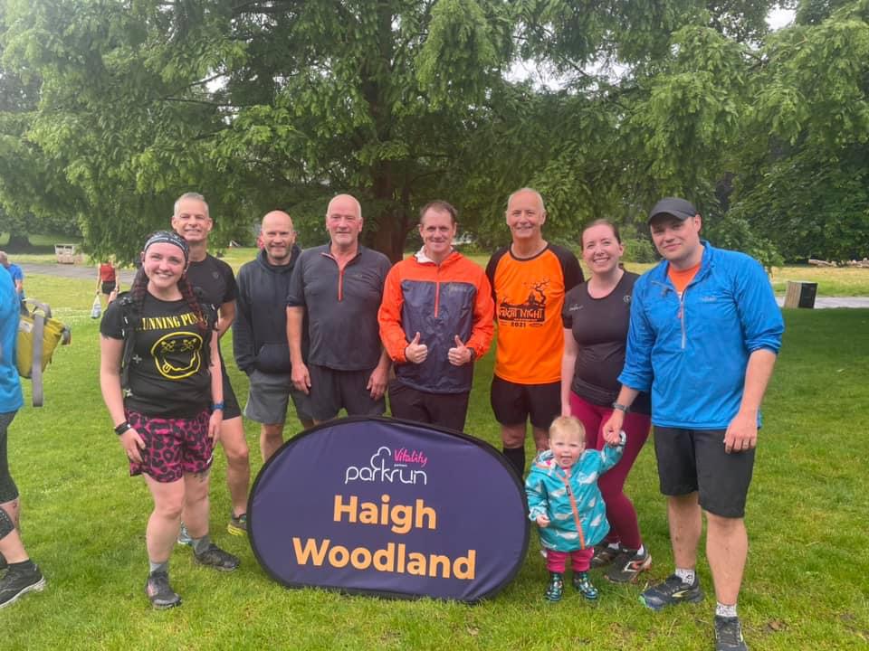 Haigh Woodlands Parkrun: Andy Laycock 24:19 Brian Halton 24:42 (3rd in age category) James Jackson 29:18 Cathy Stratton 32:27 Ian Burns 32:57 Peel Parkrun: Rachel Hancock 24:38 (2nd in age category) Lynda Hardman 27:51