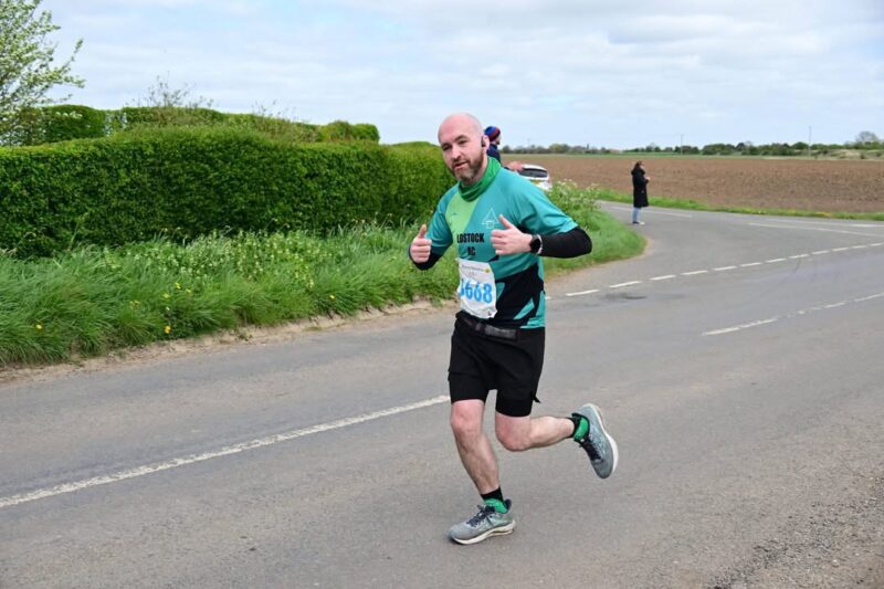 Just over a thousand runners made their way to the start line in town square, with many chasing PBs or qualifying times on a pancake flat course around the Lincolnshire Fens – unfortunately the weather had other ideas