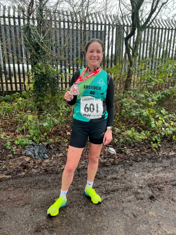 Lostock AC member Jo took part in the CancerCare Christmas Cracker 10k. The event encourages families to adorn their finest Christmas outfits and run either 1 mile, 10k or a Β½ marathon. The race also raised money for a local Cancer Charity.