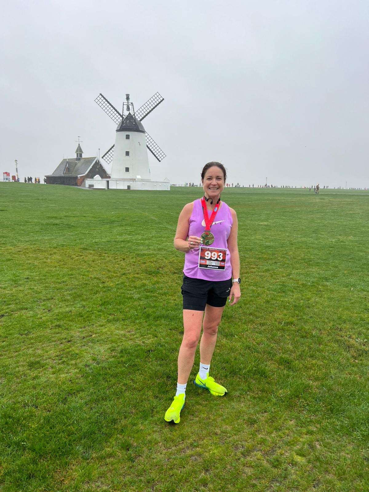 Jo travelled to Lancaster to compete in the Lancaster ยฝ marathon. Due to flooding on the route, there was a last-minute course change. The new course stared at Salt Ayre athletic track and was an out and back following the river Lune. This was a beautiful trail route on tarmac before finishing the last 300m Lancaster 1/2 Marathon