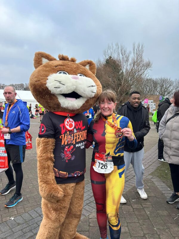 Rachel H headed to Southport to compete in the Maddog. The race organisers pick a theme for the race every year, in the past there has been Barbie, Star Wars, Back to the Future, to name just a few. This year was aDeadpool/Wolverine themed run (Dogpool/Wooferine).