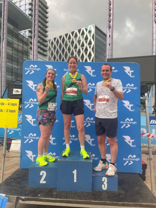 Jo was first across the finish line in 23:51 achieving first in age category. She was followed by Dave in 24:48 who was second in age category and Rachel in 26:48.