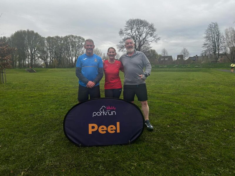 At Peel parkrun, Jay Smith (23:44) and Dougie Ainsworth (27:42) both celebrated new Parkrun personal bests, while Lynda Hardman (29:56) took 1st place in her age category.