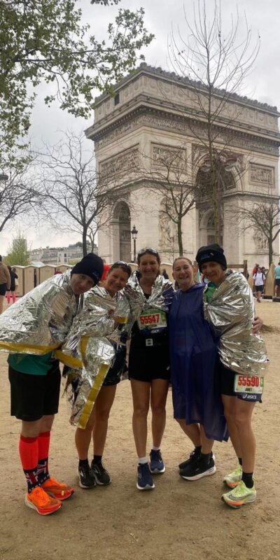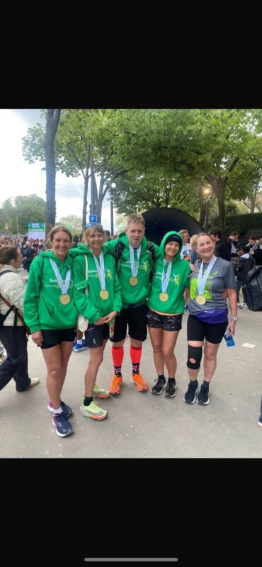 On Sunday 13th April, 5 Lostockers took part in the Schneider Electric Paris Marathon. Following months of training and many injuries along the way, the Lostock team of Beverley Atherton McKenna, Lynda Hardman, Greg Kilshaw, Sally McCoy and Janet Rhodes all made it to the start line with great support from team mate, Heather Soden and Sandra Aspinall who accompanied them to Paris to cheer them on. Having all run a marathon in the last few years apart from Lynda, who took on her biggest challenge with a gap of over 13 years since her first marathon.