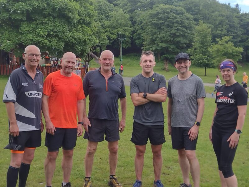 Haigh Woodlands Parkrun: Andy Laycock 23:20, Chris Baker 23:37 (3rd in age category), Brian Halton 24:33 (2nd in age category), Mike Berry 25:11, Karen Taylor 29:44 and Ian Burns 31:54.