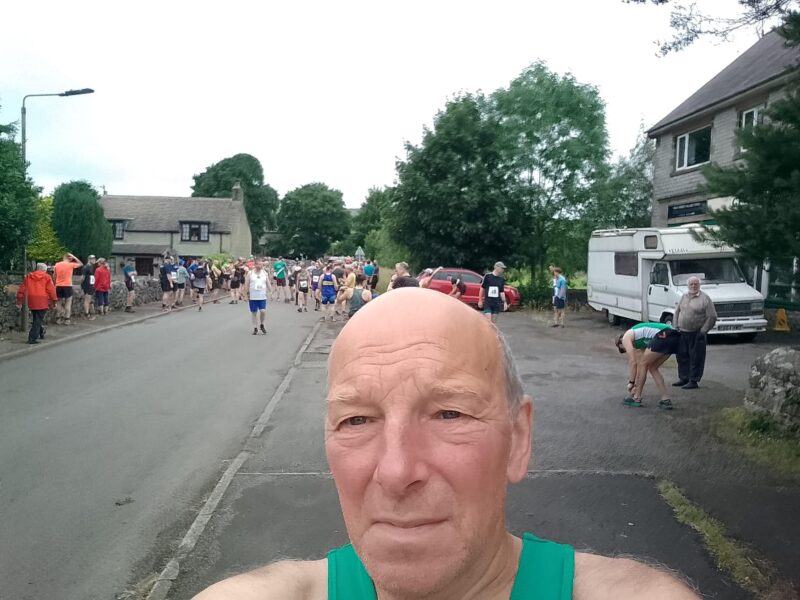 Always had this race on my calendar. Having previously done the tour of Bradwell I remembered what the terrain was like. Even though it was damp today I still chose trail shoes. As the grass trods are like a carpet and fantastic to run on. I also had my tour of Bradwell map which also covered the whole race route.. Although I didn’t need to carry it as the race route was well marshalled. After a slow start up the lane, once on the track up the hill I began to work my way passing several runners ahead of me. So far my choice of shoe was proving a good choice. Still picking off runners. Over the undulating moors on the lovely carpet of grass. Just the final climb over Eldon Hill. The terrain changed more rougher, still ok going up. Going down was a bit tricky, so had to take it carefully. I was soon passed by the lady who I had not long passed on the way up. Thankfully the rough section was short. I then had a very enjoyable fast run down to the finish. Just running out of race to repass the lady who passed me.