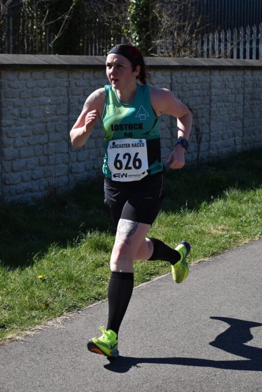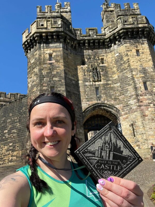Rachel S competed in the Race to the Castle in Lancaster. This is a beautiful race. Participants start to the north of Lancaster City Centre and run along the River Lune. It is a flat course until you reach the castle where you are welcomed by a very steep hill.