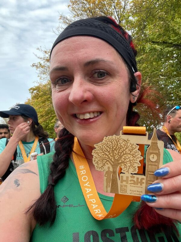 Rachel started in a later wave, due to getting stuck in an ver long queue for the toilets and spent the majority of the race over taking other runners. Knowing it was not going to be a PB day Rachel enjoyed the course taking photos and videos, completing the race in 2:04:22.
