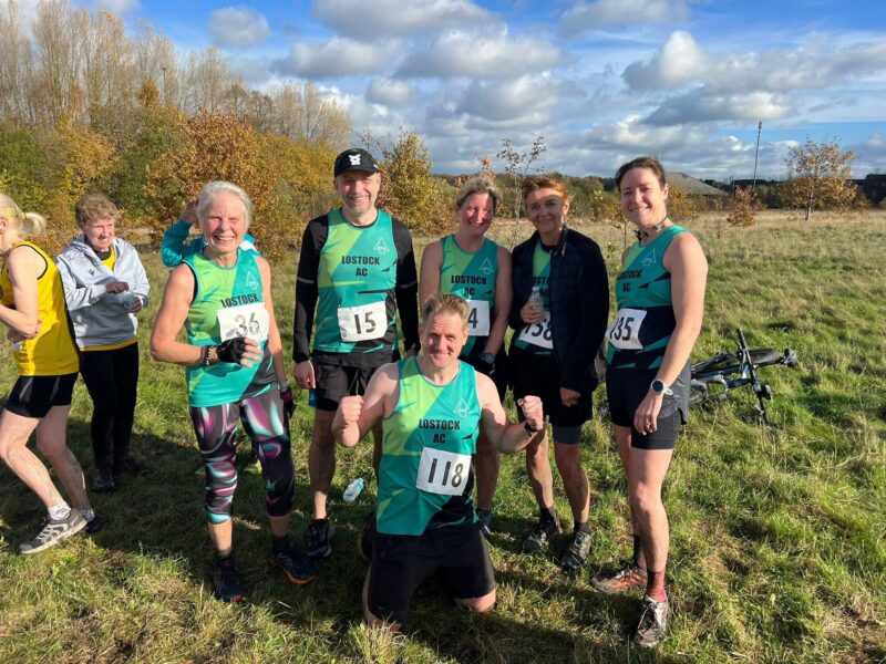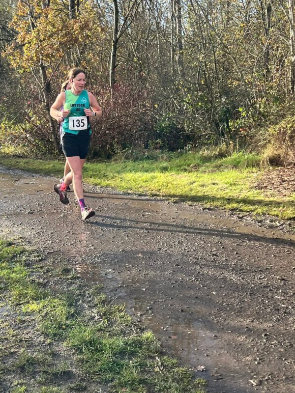 The penultimate race in the Central Lancashire Grand Prix with a very civilised start time of 10.30 am on a Sunday. Eight Lostockers took on the mud and ankle deep puddles on this twisty narrow course with a few loops on gravel tracks, a hill to start and finish and a special guest appearance in the middle for good measure. I don’t think any of us were really feeling it at the start, some carrying a bruise or two from paint balling and feeling a bit heavy from a night of celebrating Ste Hancocks 60th birthday. Well done to Greg Kilshaw for making it to the starting line at all (there were a few notable by their absence!). As usual we all put in a bit of effort and were rewarded with copious amounts of mud, which Chris B assured us we would have paid a lot of money for in a health spa. No individual prizes this time but we all unbelievably stayed on our feet! Thanks to Emma and baby Orla (in tiny running kit) for the photos and moral support, although I have my suspicions that Orla slept through most of it. Greg had a cracking run and I enjoyed following him through the puddles for the last mile or so after I eventually caught him up. Hazel says she’s never doing it again! Jo actually said she enjoyed it! But mostly because she took very steadily and was pleased to have remained upright. Chris breezed round and finished strongly whilst appreciating the exfoliating benefits. Gill took it all in her stride, her cross country experience certainly helped here and Mary put in another strong performance in her second race of the weekend. The tshirt and cake at the end almost made it worthwhile. Well done everyone.
