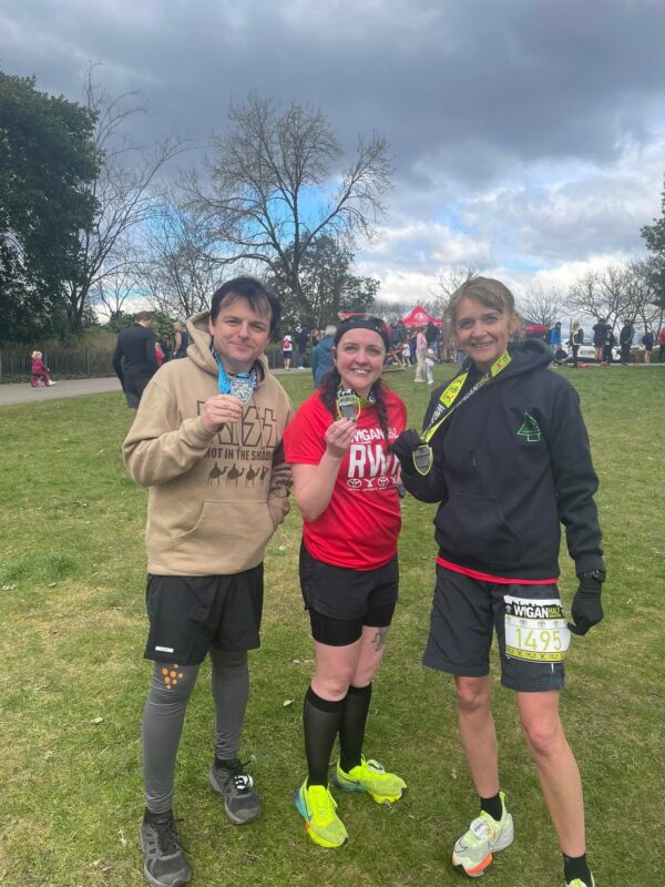 The was a busy weekend of racing for Lostockers with members also competing in the Wigan ½ marathon and 5k. The Wigan half is a tough race, starting in Mesnes Park, it heads out to the Brick Community Stadium before heading out of the busy centre to the Leeds and Liverpool Canal. The race follows the canal for 3 miles before turning to head in to Haigh Woodland Park.